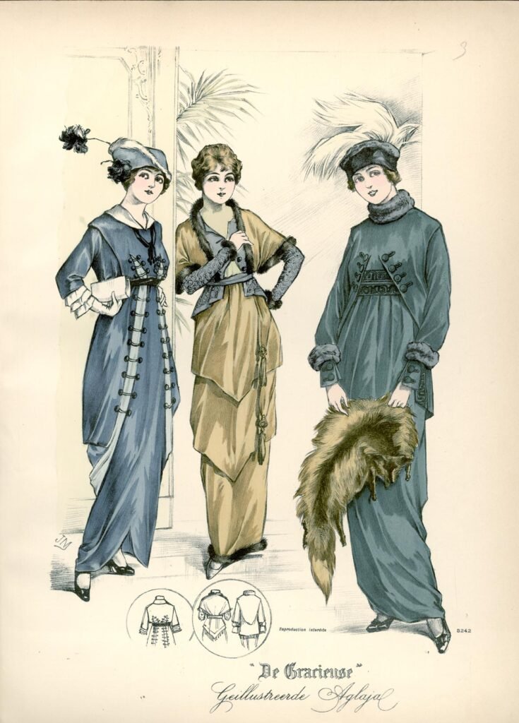 When the Edwardian age definitively came to an end with the start of WWI in 1914, women had mostly emancipated themselves from the corset. Although hemlines were still around ankle length, the only constraining items of clothing were the brassiere and girdle.